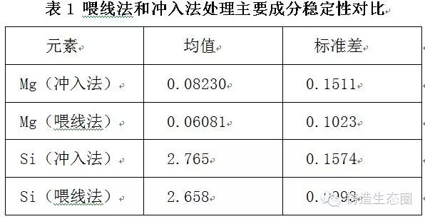 由表1可以看出,喂线法的成分稳定性高,成分数据的重现性好。