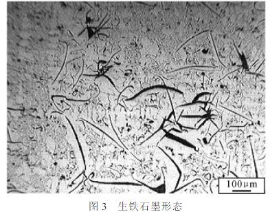 生铁中有许多粗大的过共晶石墨(如图3),这种粗大的石墨具有遗传性,熔炼过程中很难被消除,削弱了铁液在凝固过程中石墨化析出的膨胀作用,增大了铁液凝固过程中的收缩倾向。由于全废钢技术使用废钢+晶体石墨增碳的工艺,晶体石墨增碳剂的原子呈C6的六角晶格几层堆积的状态存在,C原子的扩散速度较快,加快了增碳速度,提高了铁液的石墨化能力,使铁液的收缩性反而变小,减小了铸件产生缩松的倾向。另外,利用硫阻碍石墨长成粗大片状的作用,达到了细化石墨,增加石墨数量,使石墨分布均匀的目的。硫是阻碍石墨化元素,过量会增加白口,因此,硫**控制在0.08%~0.15%。从金相分析结果可以看出,采用全废钢技术生产的铸铁产品石墨全是A型,并且石墨变得短粗,较好的改善了铸件的切削性能。