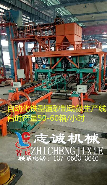 传统的制动鼓铸造方法采用粘土砂手工造型或机器造型,一般规模较小,产品供应配件市场的企业,还在使用手工造型生产;一些规模较大,主要为车轴厂配套的企业大都采用气动微震造型机组成的开放式 造型线生产。采用粘土砂铸造主要缺点是产品质量影 响因素多,生产控制难度大,往往造成铸造废品率居高不下。铸造废品一般以砂眼和缩松缩孔最多,占所有废品的70%以上,我公司下属五指石汽车配件厂与 德国BPW车轴有限公司进行合作,开发制造载重汽车制动鼓,采用铁型覆砂铸造技术生产灰铸铁制动鼓。采用铁型覆砂铸造工艺生产制动鼓,克服了传统铸造工艺的缺点,铸件冷却、凝固条件好,铸件的球化等级、晶粒大小、致密度等方面都有很大程度提高,改善了铸件综合力学性能,降低成本,提高产品生产率,同时减少了生产过程对环境的污染,实现了绿色铸造工艺,取得了明显的社会和经济效益。