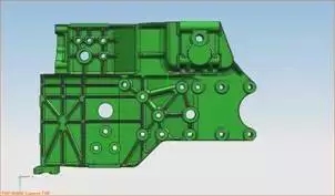 图一:汽车前悬连接架铸件二维图 3.覆膜砂铸造工艺及工装设计 覆膜砂铸造工艺是在成型的金属模具内腔上覆上一定厚度覆膜砂层而形成铸型的壳。经过反复的工艺试验并经生产验证以后,将覆膜砂层厚度合理搭配,使铸件的充型,凝固和冷却过程在一个比较理想的条件下完成,消除了铸件产生铸造缺陷的大部分因素;同时也为铸件的凝固创造了较好的冷却条件,因此大大提高了铸件的表面质量和内在质量。由于覆膜砂层比一般树脂砂铸造的砂层薄,因此可以采用高质量的覆膜砂来作为铸型用砂,从而保证了铸件的尺寸精度和表面粗糙度以及铸型强度。 3.1 覆膜砂铸造工艺设计 汽车前悬连接架铸件的壁厚不均匀,在进行覆膜砂铸造工艺设计时特别要考虑该铸件的凝固方式---均衡凝固。覆膜砂铸造工艺设计方案为一型一件,水平分型、水平浇注,且铸件重要面放置在下型;为保证铸件尺寸精度,所有型腔砂芯均采用自带砂芯。浇注系统采用半封闭式,其断面比例为F直:F横:F内=1.2;1.6:1,并采用无冒口铸造。浇注系统设计中,选用较大的横浇道截面积,使铁液中的夹渣物有充分的上浮高度,起到很好的挡渣作用,同时可满足铸件必要的液态补缩需要;内浇道浇入位置在铸件薄壁处,铸件壁厚最厚处离内浇道远,从而保证铸件的同时凝固、并且在铸件的厚大部位安放必要的冷铁;充分保证铸件的同时凝固。铁水进入铸型后不能直接冲刷芯不能造成紊流现象。此外,由于铸件尺寸比较大,壁厚薄对铁水的降温作用较大,内浇道的长度应尽可能短,以便使球铁铸件表面不产生因铁水降温而引起的皱皮、冷隔等缺陷。 3.2 工装设计 汽车前悬连接架铸件的技术、质量要求比较高;生产难度大,覆膜砂铸造用砂选用热固化酚醛树脂覆膜砂。该覆膜砂铸造工装设计主要包括金属型、型板、射砂装置等。金属型预 热温度控制在210-230℃;汽车前悬连接架铸件尺寸比较大,铸件质量在63㎏;金属型的蓄热量低,在型板设计时,特别要加热模板的加热能力,以保证覆膜砂的即时固化。此外该铸件的高精度要求,使模具设计时对铸造缩尺的选取十分关键,根据铸件凝固的受阻情况,凯发登录采取不同的部位选用不同的缩尺,缩尺为0.9∽1.2% 。金属型材质为HT200,在批量生产时金属型的变形较少;该铸件的自带芯有一定的高度.金属型制作采用组合式,既保证工艺要求,又降低了金属型的制造成本为保证覆膜砂造型时的覆砂质量和铸件浇注时排气通畅,在金属型和型板设计时,特别注意排气系统的设计,金属型和型板采用间隙排气、排气槽排气和气针排气相结合的排气方式。射砂孔的封闭采用堆积方式.制作和维修都十分方便。如图二覆膜砂上、下型壳