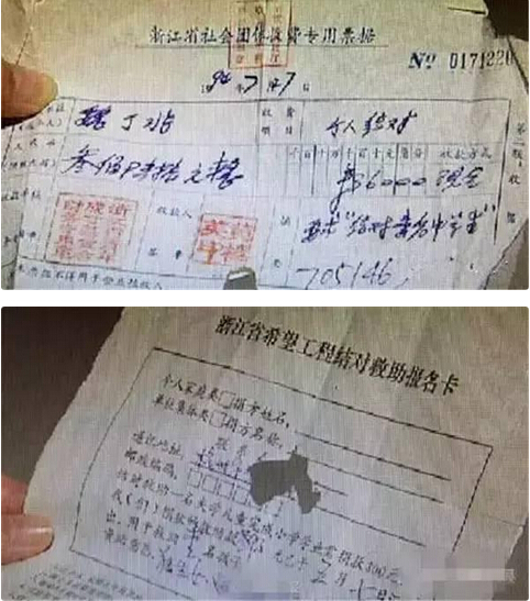 一沓沓小心收藏好的助学证明和书信 《浙江省社会团体收费专用票据》 《希望工程结对救助卡》 《扶贫公益助学金证书》 几十张从几百元到几千元的捐助证明 静静地展示着老人这些年的生活 让人感触最深的 是那张签了名的遗体捐赠志愿表 何其伟大的精神! 何其伟岸的情操!