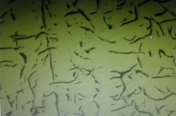 注: ①铸件本体取样,随机抽查。 ②总碳是强制性的要求,必须保证。 ③其它元素Mn、Cr、Cu主要用来保证机械性能和硬度。 制动盘生产工艺 为了满足客户的要求,运用了合成铸铁,大量使用废钢改善铸件的金相组织及力学性能。利用氮的合金化作用,并采用含有一定氮含量的增碳剂,把含碳量提高到3.6%以上,高碳当量高强度的制动盘生产工艺。 (一)合成铸铁 采用高废钢(60%)配比下,加入足够的增C、增S的冶金过程,提高铁液的形核能力。铁液温度是原铁液首要的冶金指标,铁液温度的高低不仅直接影响铸铁的力学性能、铸造性能、加工性能,还影响铁液的纯净度。铁液温度控制在1500-1550℃为保证产品质量,熔炼完毕后,静置3分钟,确保炉内渣浮起来,打干打净,通过高温熔炼非金属夹渣物排除炉外,防止铸件夹渣现象。使用合成铸铁改变石墨形态,增强强度及硬度。 (二)增碳剂选择问题 增碳剂种类很多,可以用作铸铁增碳剂的材料也很多,增碳剂的工艺也不同,含量也不同,在保证铸件质量的前提下,应根据产品的要求进行选择增碳剂。 石墨型增碳剂特点是:含碳量高,容易吸收,熔化快,含氮量低,低硫。 煅烧石油焦增碳剂,其因为没有经过高温煅烧或煅烧温度偏低,时间短,氮含量一般在9000PPM左右,硫含量也高,在白纸上无法画清楚的痕迹。资料介绍含氮量每增加10PPM。灰铸铁的强度可提高5-7Mpa,同时硬度可增加3-4HB,当氮含量在70-120PPM,可以使石墨变短并且有尾部钝化作用。氮能强化珠光体基体,提高铸件力学性能,氮当铸铁的含氮量超过临界点(一般认为140PPM)时,就会使铸件产生氮气孔,合理利用。 在2016年10、11、12三个月内,对制动盘应采用增碳剂问题,批量试验。2016年10月,采用石墨型增碳剂,含氮量在40PPM左右,14包所浇制动盘(每包1T铁水),基本体抗拉强度为198Mpa。有低于客户要求的200Mpa标准,石墨形态见图。而11月份改为石油焦增碳剂,N含量平均为80PPM,240包铸件的平均抗拉强度226Mpa。12月份当N含量达到120PPM时,300包铸件的平均抗拉强度达到了252Mpa,石墨细小而弯曲。