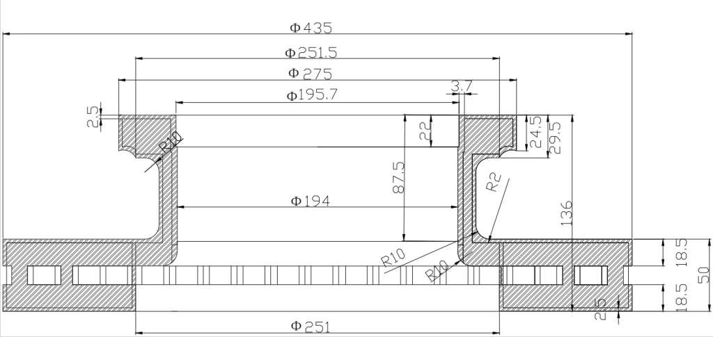 (湖北襄阳云威机械有限公司) 随着经济飞速发展,我国机车行业也迎来了发展新高峰,本文根据机车制动盘所用材料和铸造工艺,来对其刹车制动系统进行详细分析与探究,结合制动盘一般情况下的应力场以及温度,进一步利用科学方法来计算解析机动车制动盘的生产过程,以求促进我国机车行业的发展。 本文所介绍生产的HT250制动盘规格品种多产量大,它属于车桥厂一类安保件,涉及到人的生命财产安全,同时又是易损易耗件。随着客户要求越来越高,市场的竞争越来越激烈。采用了“套壳”生产工艺,确保质量稳定性,为了减轻工人劳动强度,提高工作效率,女工也可以承担生产任务。铸件表面光洁,壳型生产特点,铸件致密和砂型生产相比同品种同尺寸的铸件要轻两公斤,缩松缩孔缺陷极少。射芯机上调到合适的温度,在铁型模具上覆一层6mm厚的覆膜砂制成壳型,把制好壳型平稳放入铁壳中,下芯,合模,固定好铁箱,与地面倾斜30º,浇注时铁液快速进入型腔,燃烧充分,排气畅通。浇注成型的铸件称之“套壳”造型工艺。铸件出品率高平均93%,合格率可达98%。(制动盘示意图如下)